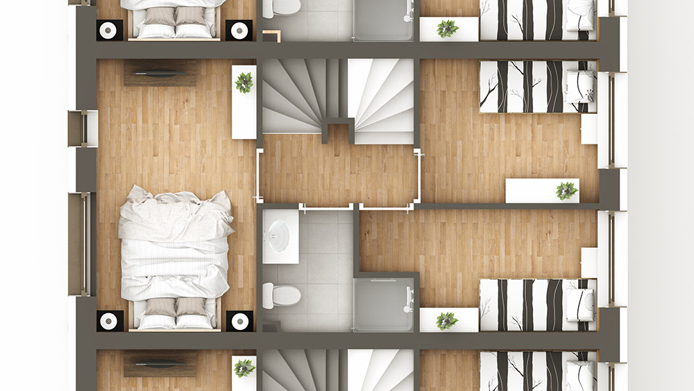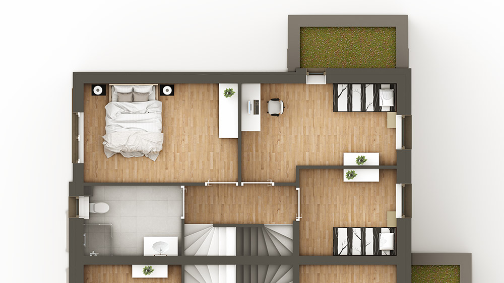Door dakvariaties aan te bieden zorgen we dat Noest altijd past in het bestaande stedenbouwkundig plan. Kies voor een klassiek zadeldak of de asymmetrische variant. Ook een zaagtand of een plat dak zijn mogelijk. Met of zonder groen.