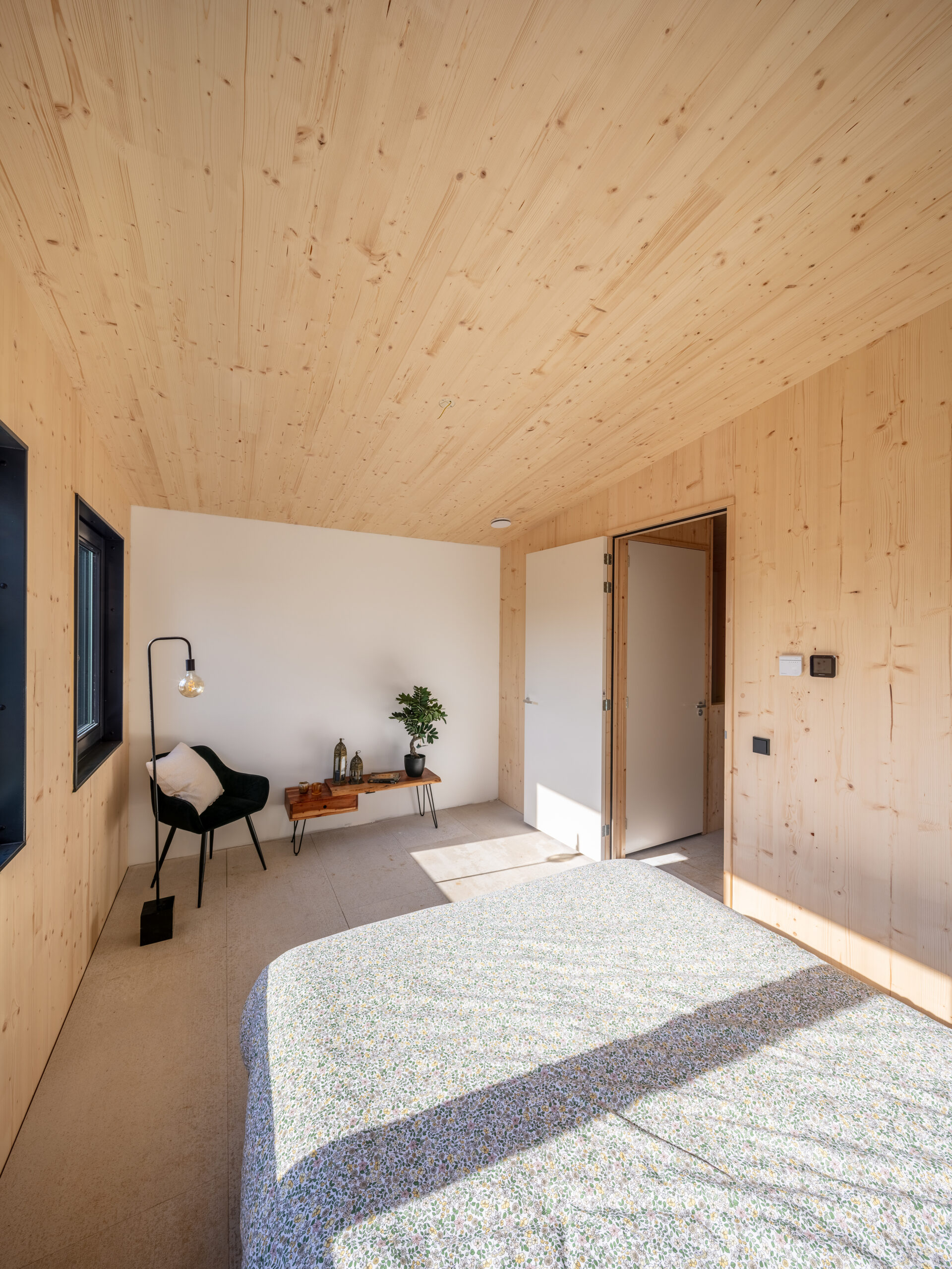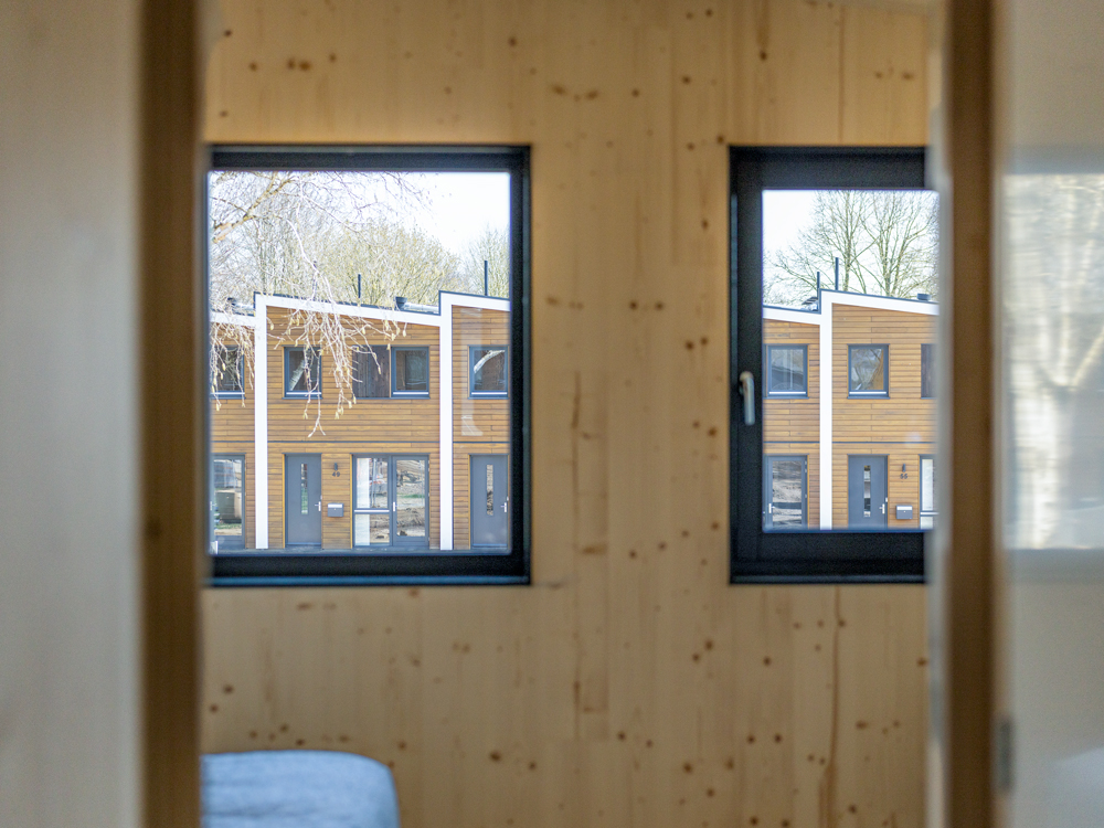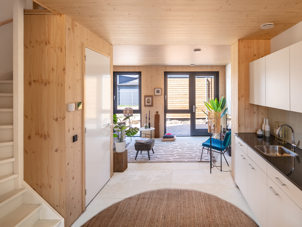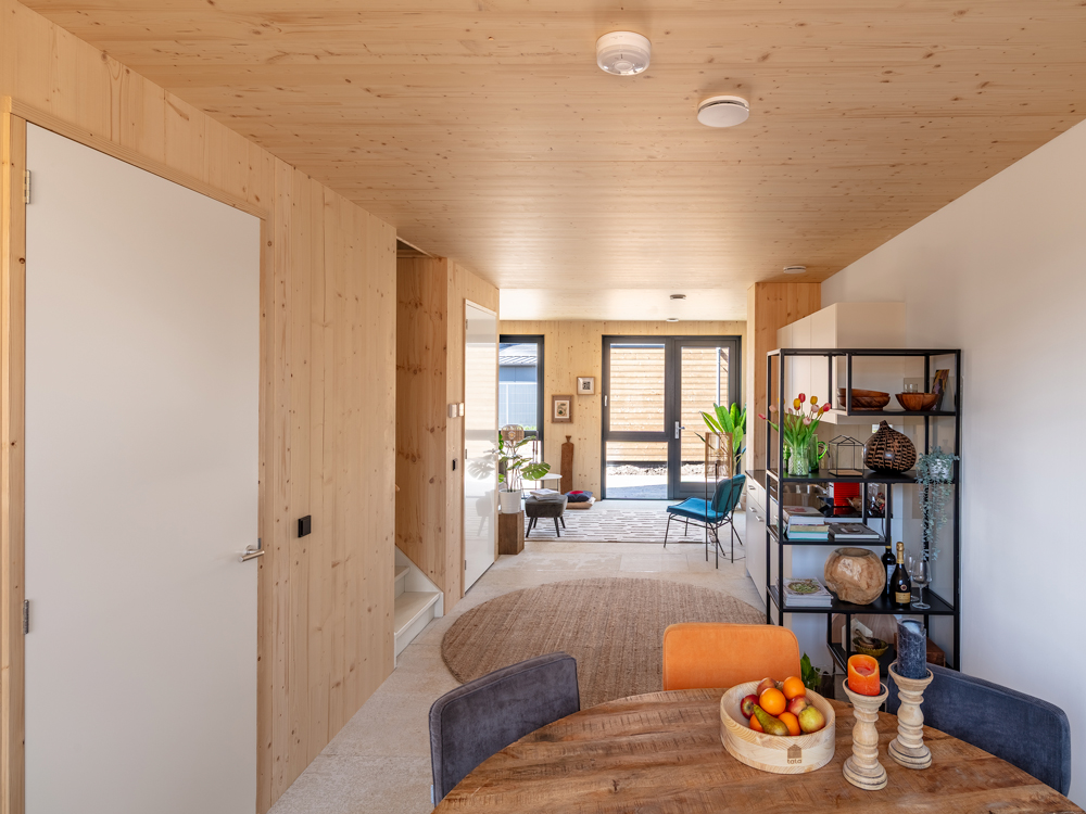 Tala woningen zijn licht en ruim. Op de meeste wanden en de plafonds laten we het hout in het zicht. Dat zorgt voor een luxe uitstraling. De wanden zijn transparant behandeld tegen vuil en vergeling.