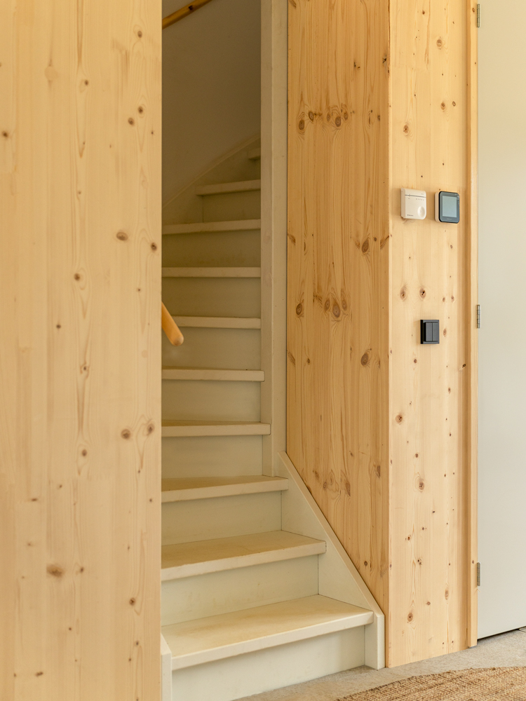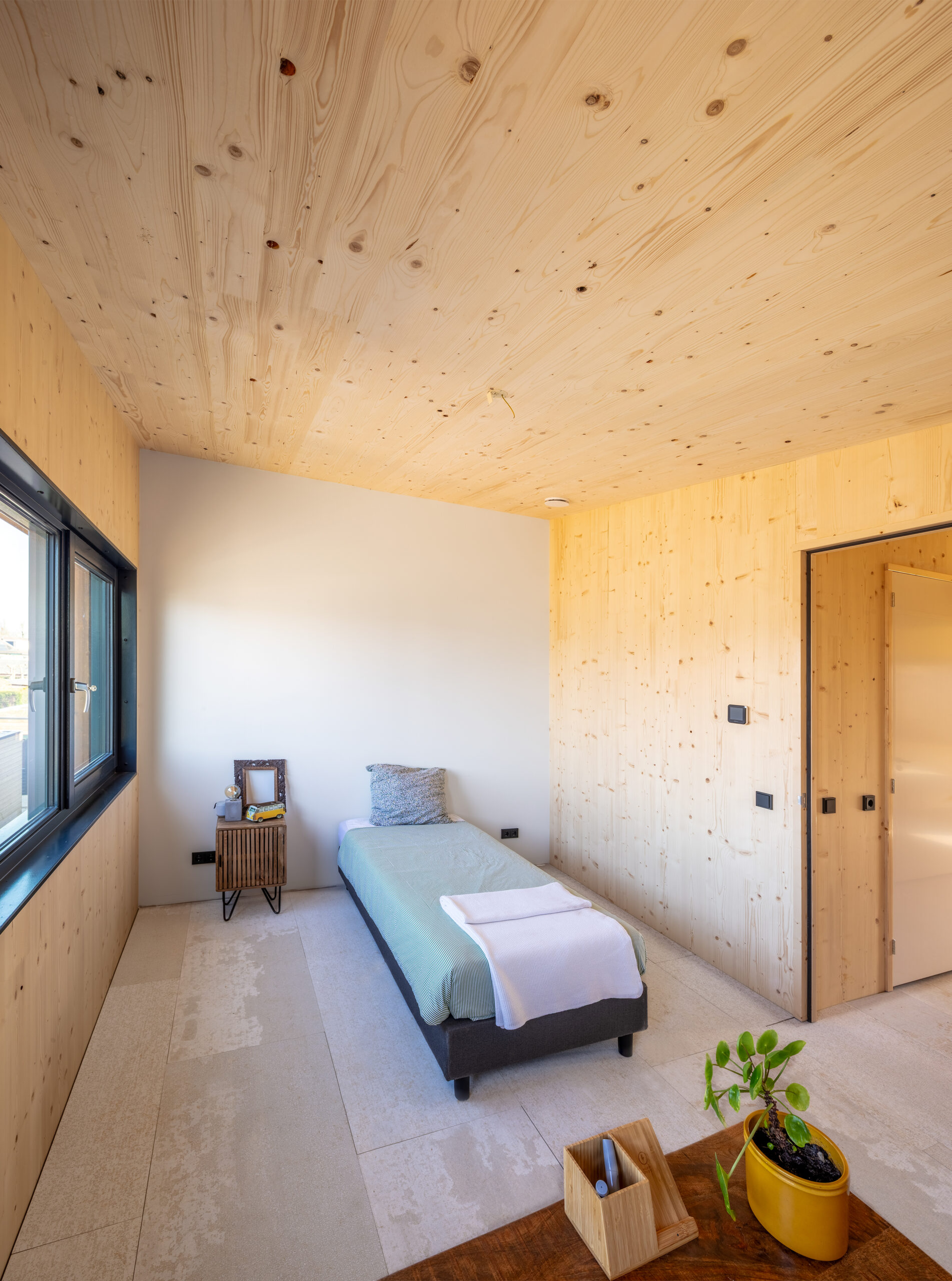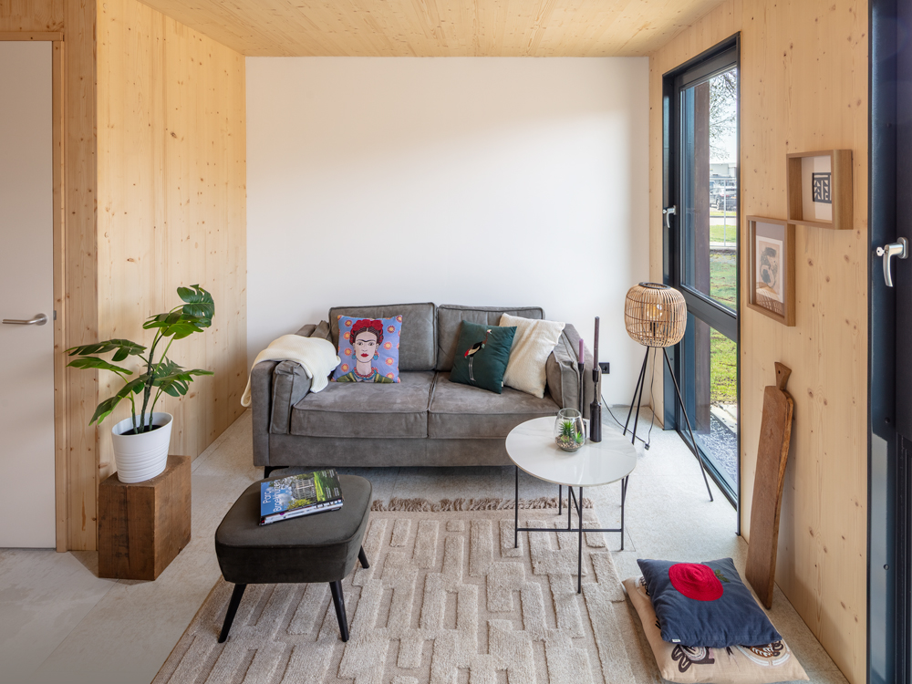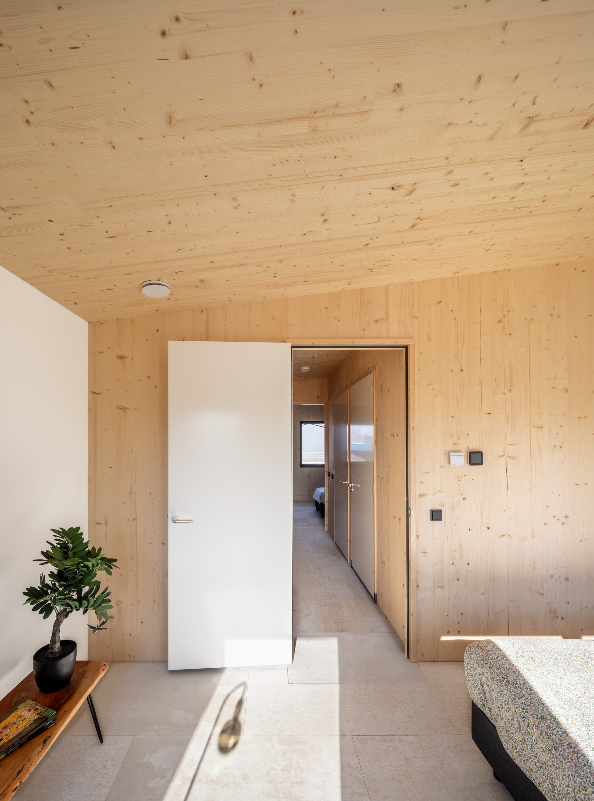 Tala woningen zijn licht en ruim. Op de meeste wanden en de plafonds laten we het hout in het zicht. Dat zorgt voor een luxe uitstraling. De wanden zijn transparant behandeld tegen vuil en vergeling.