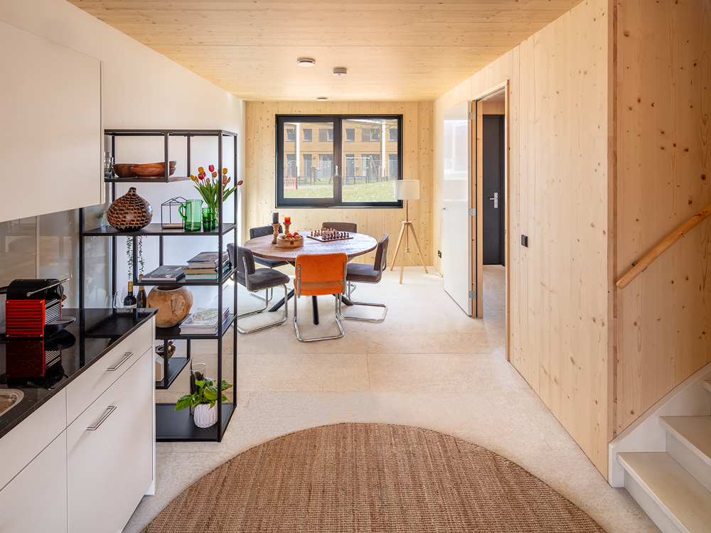 Dit is de nieuwe standaard voor eengezinswoningen: Noest. Een modulaire woning (PMC 3, 4 of 5) met een gebruiksoppervlak van 78 m2 tot 140 m2. De woning is CO2 neutraal en biobased. Het is een echte alleskunner op stedenbouwkundig gebied. Geen enkele noestwoning hoeft er hetzelfde uit te zien door de verschillende gevel- en dakvariaties. Ook is de woning levensloopbestendig te maken.