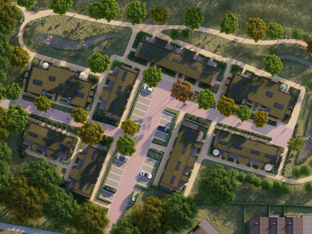 - Na oplevering planten we samen met de bewoners bomen en hagen om de groene uitstraling van het project te versterken.