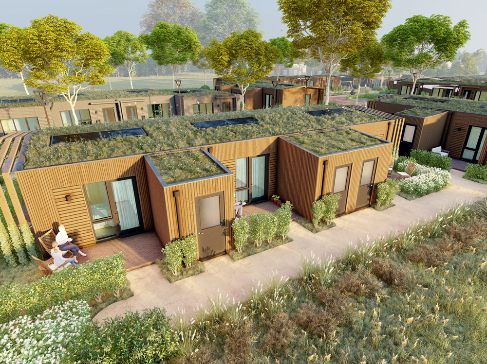 - De woningen worden voor 90% gefabriceerd in onze fabriek in Broekland, wat zorgt voor constante kwaliteit en minimale impact op de bouwlocatie.
