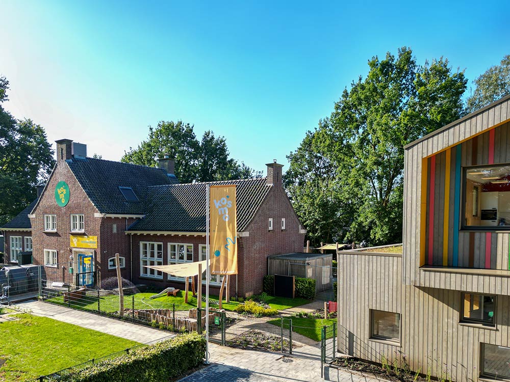 In opdracht van kinderopvangorganisatie KOSMO realiseren wij een duurzame nieuwe locatie in Wierden. Wij hebben, samen met architect en adviseurs, gekozen om de uitbreiding van de Kleine Maatjes te bouwen met een bijzonder hoog aandeel natuurlijke materialen, zoals kruislaaghout, houtvezelisolatie en houten gevelplanken. Hiermee creëren we een gezonde en prettige omgeving, wat positieve effecten zal hebben op de kinderen en medewerkers van De Kleine Maatjes.