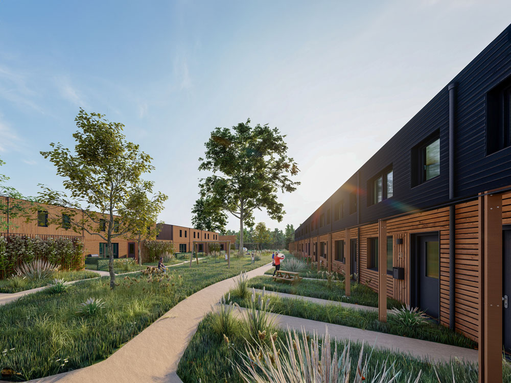 Woningcorporatie Stadlander gaat voor duurzaam woningconcept bij de herontwikkeling in Putte. Tala bouwt 18 biobased woningen aan de Postbaan gelegen om een prachtige groene binnentuin. Twee rijen huizen van verschillende types, maar in dezelfde stijl. Er worden 8 starterswoningen van het type Nerf geplaatst in twee blokken van 4. De andere 10 geplande eengezinswoningen zijn van het type Noest. Door het verbinden van de prive tuinen met de binnentuin, ontstaat er een fijne plek waar bewoners elkaar ontmoeten. Natuurlijk zijn de houten woningen 90% biobased, volledig circulair en natuurinclusief.