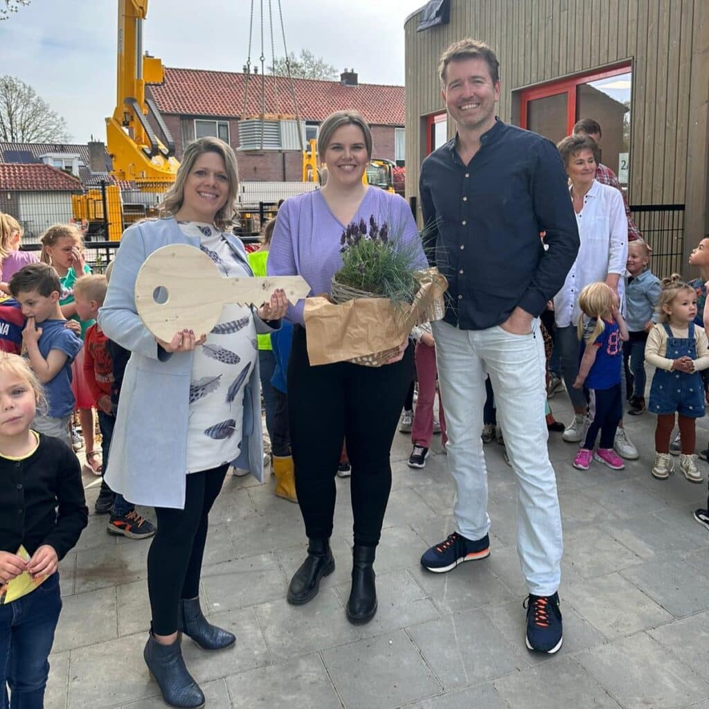 Hellendoorn – Ons super duurzame kindcentrum is in gebruik genomen door kinderopvangorganisatie Kosmo. Het was een feestelijk moment voor de medewerkers en kinderen van de Noord Es in Hellendoorn. Dit gebouw van kruislaaghout (CLT), houtvezelisolatie en een houten gevel is zo duurzaam mogelijk gebouwd. Het dak is voorzien van groen, zonnepanelen zorgen voor de eigen energievoorziening. Op veel plaatsen is het hout in het zicht gelaten. Dat geeft de ruimte een fijne sfeer, goede akoestiek en gezond binnenklimaat.