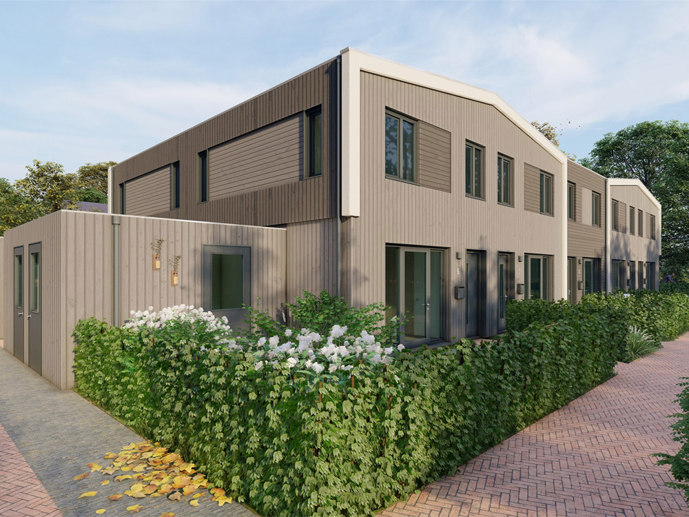 Omnia Wonen werkt voor het ontwerp en de bouw van de woningen samen met Tala. De 10 rug aan rug woningen worden in onze fabriek geassembleerd en bestaan voor 90% uit natuurlijke en hernieuwbare materialen.