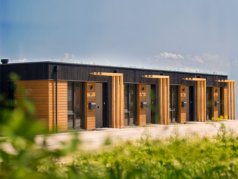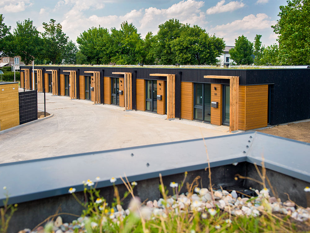 In Sittard is hout duurzaam, snel en betaalbaar ingezet om de woningnood te verlichten. In opdracht van Wonen Limburg en gemeente Sittard-Geleen hebben wij twintig permanente verplaatsbare biobased woningen geproduceerd. Met CLT, houtvezelisolatie en een houten gevel komt het aandeel biobased op 85%, voor een positieve CO2 voetafdruk. Op het dak ligt een Dakbloemenweide voor een betere biodiversiteit. Tussen aanbesteding en sleuteloverdracht zat een recordtijd van slechts negen maanden. Dit project laat maar zien dat hoogwaardige houtbouw altijd kan, ook als het draait om betaalbaarheid en snelheid.
